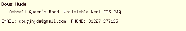 by Doug Hyde in Wales are:
