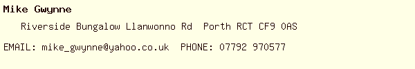 The most recent courses measured by Mike Gwynne in the Wales are: